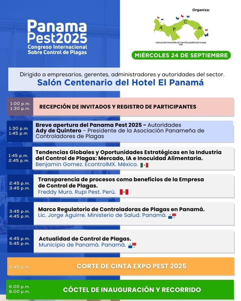 Con el objetivo principal de destacar la importancia de toda la cadena de valor para la gestión integral de plagas en Panamá y el mundo, le estamos invitando a participar del Panama Pest 2025, el cual se celebrará en el Centro de Convenciones Vasco Núñez de Balboa, Hotel El Panamá, los días 24 y 25 de septiembre de 2025.